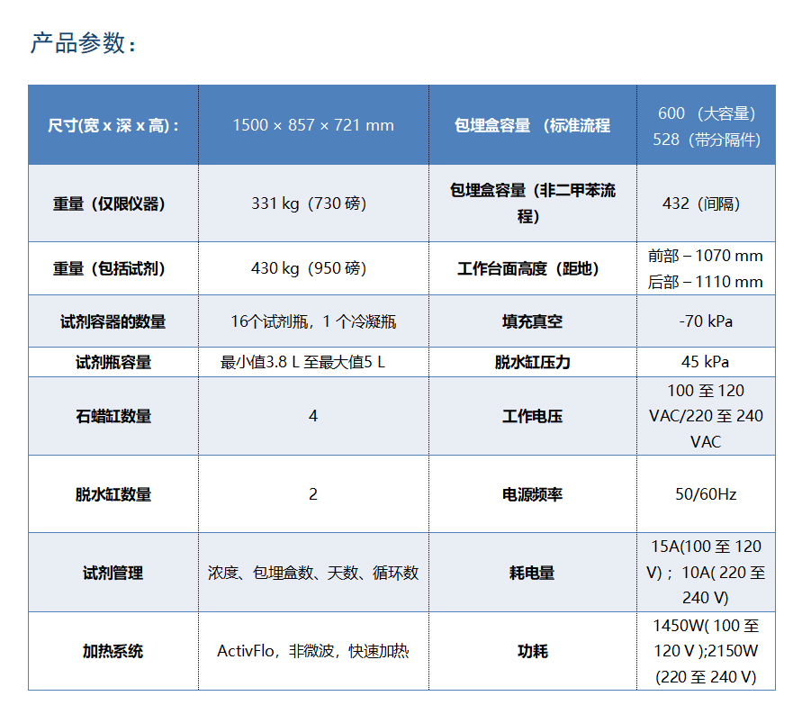 直觀的觸摸界面,操作更便捷;試劑瓶LCD背光照明和標(biāo)簽便于識別液位和試劑狀態(tài),更醒目;Parablocks速熔石蠟與蠟缸匹配,無需看管,更省力。